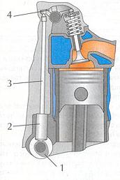 Рис. 4. Газораспределительный механизм: 1 — кулачок; 2 — толкатель; 3 — штанга; 4 — коромысло.