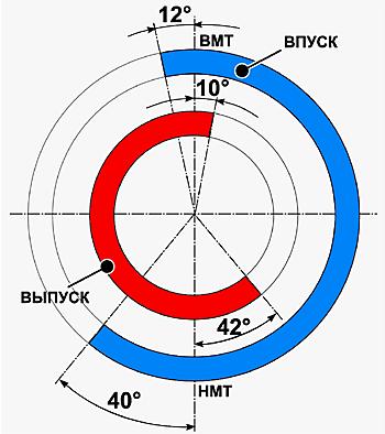 Рис. 3. Круговая диаграмма фаз газораспределения 4-тактного двигателя