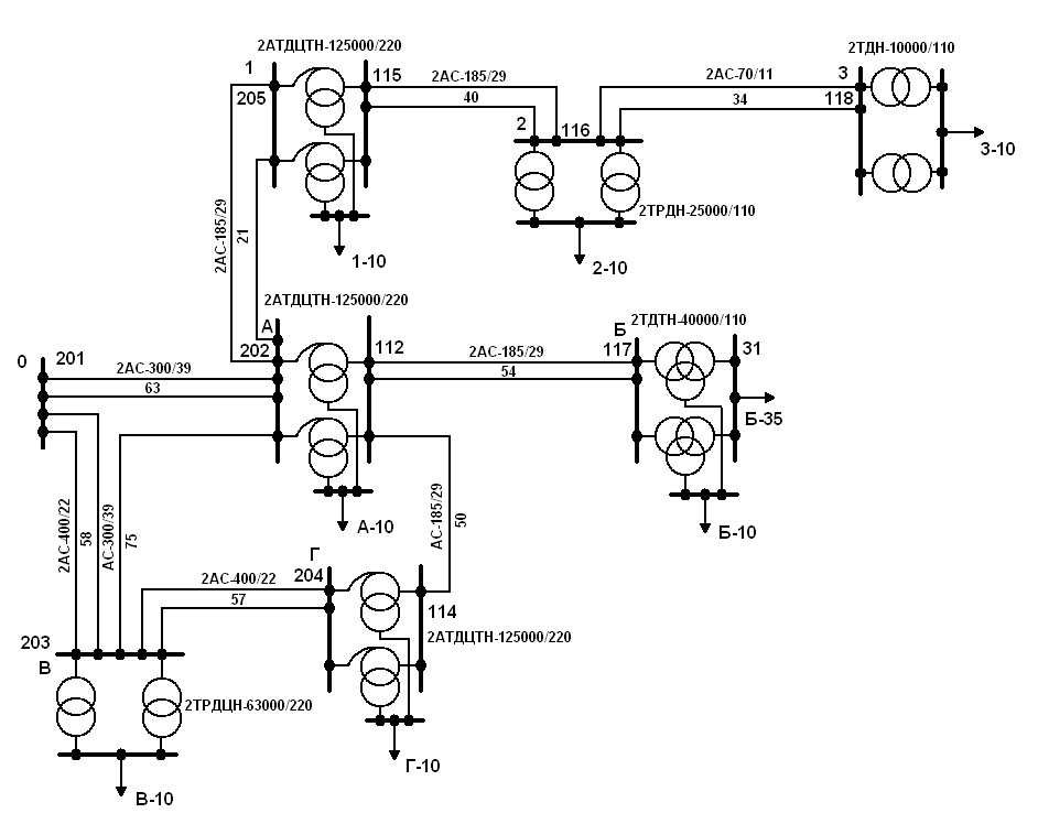 Рис.1. Схема существующей электрической сети 220/100 кВ
