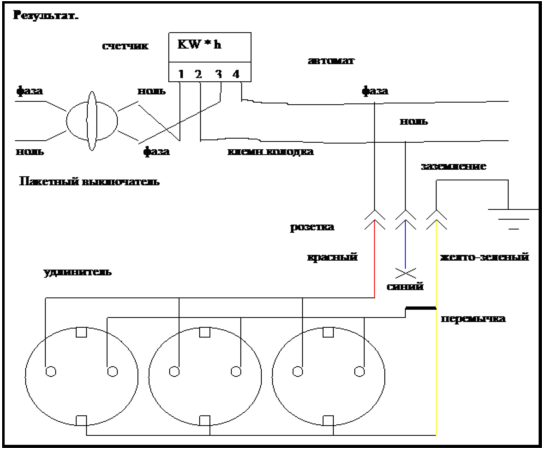 В случае опасности достаточно лишь отключить удлинитель из розетки, а приборы подключить к розетке и счетчик заново начнет работать.