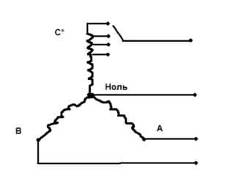 Теперь подробнее о количестве витков: т.к их количество сильно зависит от мощности трансформатора его типа их желательно подобрать методом проб. Цель: напряжение на обмотке С (при включение трансформатора на две фазы А и В) должно быть в пределах 380 + 3. .20 в. с отводами через 2. .3 вольта. Обычно всего 30. .100 витков. Желательно все это проверить экспериментально последовательным включением и замером напряжения. Сечение провода надо взять не меньше чем тот, которым намотаны первичные обмотки.