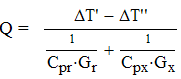 Интегрируя последнее уравнение в пределах от начального значения ∆Т=∆Т' до конечного значения ∆Т=∆Т" при n=const, получим уравнение потока теплоты Q = (∆Т' - ∆Т")/n (9), где ∆Т' = Т>г>' – Т>х>', ∆Т" = Т>г>" – Т>х>"; Т>г>', Т>г>" – начальная, конечная температуры нагретой среды; Т>х>', Т>х>" – начальная, конечная температуры холодной среды. Тогда