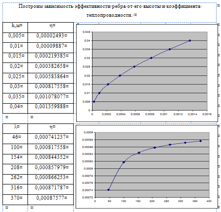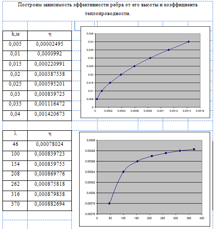 Исследовать эффективность оребрения поверхности плоской стенки в зависимости от высоты ребра h, коэффициент теплопроводность материала λ при граничных условиях третьего рода.