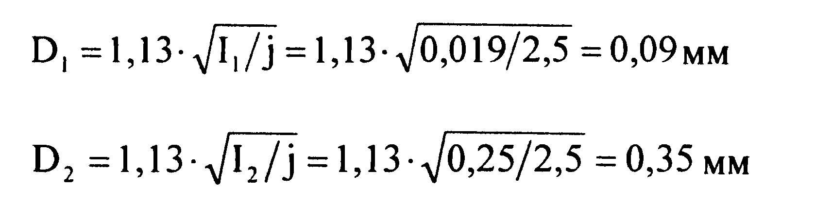 Определяем диаметр проводов обмоток трансформатора (без учета толщины изоляции)