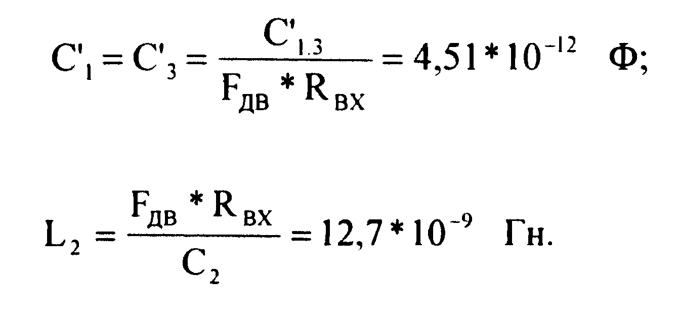 Теперь рассчитаем значения элементов схемы ФВЧ: