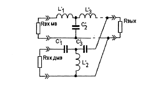 Рис. 4а. Принципиальная схема МВ-ДМВ диплексера