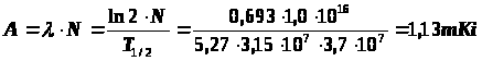Активність кобальту, період піврозпаду якого дорівнює T>1/2>= 5,27 років розраховується так