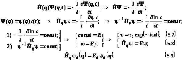 Результат (5.9) это стационарное уравнение Шрёдингера. Оно представляет собой операторное выражение закона сохранения энергии стационарной системы. Это чисто пространственная часть общего решения. Временная часть описывает периодический процесс.