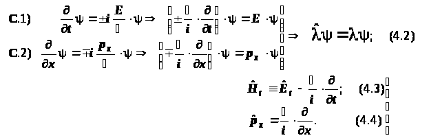Энергия и импульс получаются из волновой функции с помощью дифференцирования по разным переменным – времени и координате. Общая схема вычисления представлена формулой 4.2.