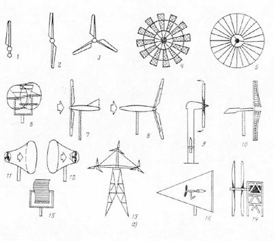 Рис.5. Ветрогенераторы с горизонтальной осью вращения