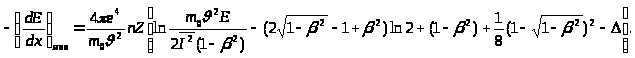Если сравнить формулы для потерь энергии электронов на ионизацию и тормозное излучение (19) и (27), то можно найти отношение этих потерь: