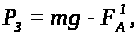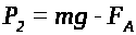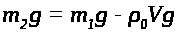 З іншого боку P>2>=m>2>g, де m>2>> >- маса важків при зважуванні, а F>A>=ρ>0>Vg, де V - об’єм тіла. Отже: