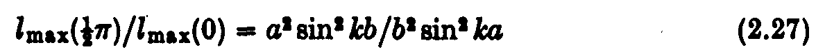 На рис. 4 показана зміна klmax з ka в той час, як рис. 5 показує безрозмірну зміну ширини захвата щодо діаметру диска. Можна побачити, що максимальне значення klmаx відбувається в першому нулі поки klmах зменшується до нуля при ka = 3,83 відповідно до першого нуля B (ka). Наступні нулі А(ka), B (ka) викликають коливальну поведінку klmax зі збільшенням ka. Найкраще це показано при відношенні ширини захвата lmax/2a зі зміною ka. Ефект позначення, який включає А (ka) дає абсолютний максимум відношення ширини захвата приблизно 0,4 у потрібному діапазоні при ka == 0,7 або відношення довжини хвилі до діаметра приблизно 5. Також показана крива (2ka) -l отримана з (2.24), приймаючи, що резонанс може бути досягнутий при всіх частотах. Як очікується єдина точка контакту з кривою lmax/2a знаходиться в першому нулі А(ka).