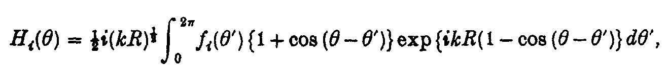 Оскільки і та exp {- ik (x cos + y sin ) + kz} - гармонічні функції, які задовольняють (А5), з (А19) витікає, що Hі() може бути записане як негативн величина того ж підінтегрального виразу проінтегрованого по Sc. Це дозволяє поведінку і в далекій області, яка дана в (А15) використати для отримання: