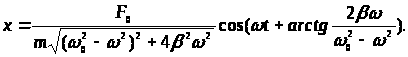 З урахуванням співвідношень (6) і (7) розв’язок диференціального рівняння вимушених коливань (2) матиме вигляд