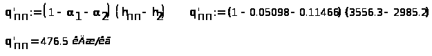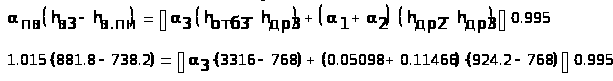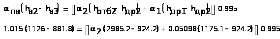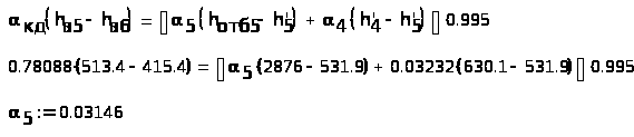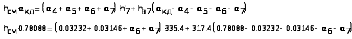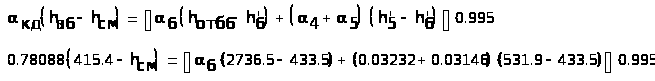 Решаем, полученную систему из 3-х уравнений и находим неизвестные: энтальпия в точке смешения hсм=320.1 кДж/кг, доли отбора пара на П6, П7 – 6 = 0.02974 и 7 = 0.02456.