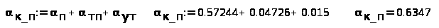 к_п = п + тп + ут = 0.57253 + 0.04726 + 0.015 = 0.63479