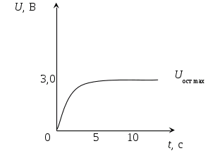 При подаче на ячейку прямоугольного импульса напряжения с амплитудным значением 10 В зависимость напряжения на ячейке от времени имеет вид.