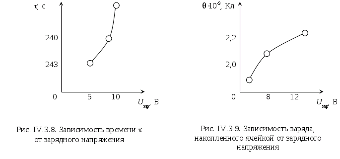 ВАХ ячейки, используемой в данной работе нелинейны, поэтому ячейку можно представить как конденсатор, накапливающий заряд на обкладках, величина которого оказалась равной 10 5 Кл(эквивалентная емкость такого конденсатора порядка 10 мкФ.
