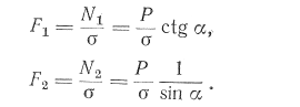Далее определяем площади поперечного сечения стержней по величине заданного напряжения о: