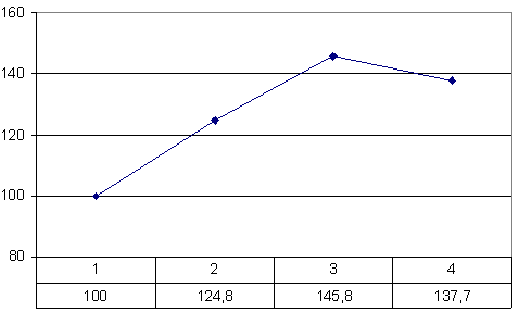 Закономерно, что кризисное ухудшение общеэкономической ситуации в конце 2008 – 2009 гг. сразу привело к спаду производства: как сообщает Удмуртстат, по итогам 2009 года зафиксировано снижение объема промышленного производства в реальном выражении на 3,8%. Следует отметить, что промышленность играет огромную роль в экономике Удмуртии: по итогам 2008 года она обеспечила 43% всего оборота экономики региона.