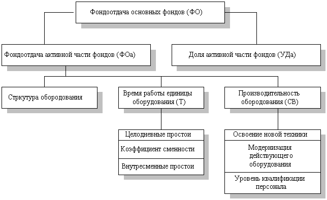 Рост фондоотдачи является одним из факторов интенсивного роста объема выпуска продукции (ВП). Эту зависимость описывает факторная модель: