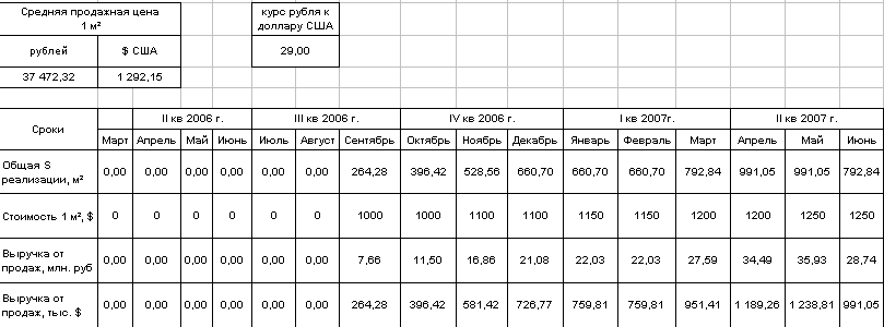 При расчете поступлений от продажи квартир были сделаны следующие прогнозы: