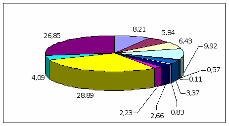 Наибольший удельный вес в классификации расходов занимают межбюджетные трансферты. В 2009 году доля расходования этих средств составляет 29,38%. Если говорить о динамике этого показателя, то уже в следующем году (2010) он снижается на 0,8%. Но в денежном эквиваленте увеличивается на 630,46 млрд. руб. В среднесрочной перспективе предусмотрено абсолютное увеличение межбюджетных трансфертов к 2011 году до 3 994,42 млрд. рублей, что составляет на 1 007,31 млрд. руб. больше по отношению к 2009 году. В диаграмме 1 и 2, можно наглядно увидеть, как происходит изменение этого показателя.