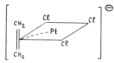 Рассмотрим, например, соль Цейзе KPtCl>3>(C>2>H>4>). Молекула этилена занимает координационное место в плоско-квадратном комплексе PtCl>4>2-, вытесняя ион хлора: