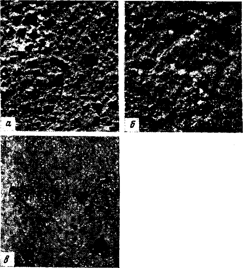 Рис. 1. Микрорельеф поверхности образца: а - до растяжения, протравлен; б, в - после растяжения (в - протравлен)