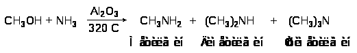 В промышленности алкилирование аммиака проводится первичными спиртами в присутствии хромита меди или окиси алюминия и других катализаторов при 300оС. При этом образуется смесь аминов, которую далее разделяют ректификацией.