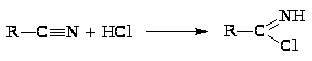 Нитрилы взаимодействуя с хлороводородом превращаются в иминохлориды: