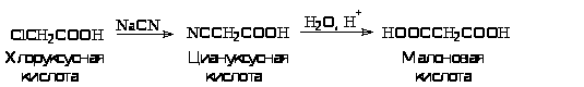 Малоновую кислоту главным образом получают из хлоруксусной кислоты по схеме: