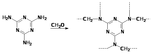 Путем конденсации меламина с формальдегидом получают меламиноформальдегидные смолы: