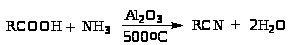 Все эти реакции часто совмещают в одном процессе, пропуская смесь карбоновой кислоты и аммиака через окись алюминия при 500 оС: