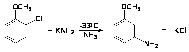 При действии амида калия на о-хлоранизол в жидком аммиаке образуется м-аминоанизол .