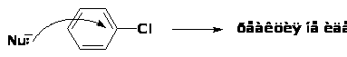 Арилгалогениды не реагируют по механизму SN1, т.к. арил-катионы крайне неустойчивы и не могут образовываться. Они не могут реагировать и по механиз-му SN2, т.к. бензольное кольцо препятствует тыловой атаке по механизму SN2: