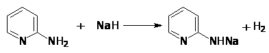 На практике гидрид натрия далее реагирует с -аминопиридином давая натриевое производное аминопиридина: