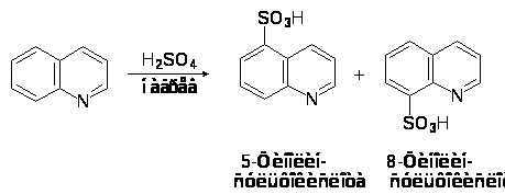 По свойствам хинолин очень напоминает пиридин. Он вступает в реакции электрофильного замещения. Эти реакции протекают легче чем в случае пиридина и осуществляются по бензольному кольцу:
