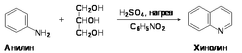 Хинолин и его гомологи содержатся в каменноугольной смоле. Существует много синтетических методов получения хинолина. Из них наиболее широко используемым является метод Скраупа. По методу Скраупа хинолин получают нагреванием анилина с глицерином в концентрированной серной кислоте в присутствии мягко действующего окислителя, такого как нитробензол: