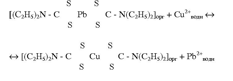 Іони Купруму реагують з діетилдитіокарбамінатом свинцю у хлороформі з утворенням нерозчинної у воді комплексної сполуки: