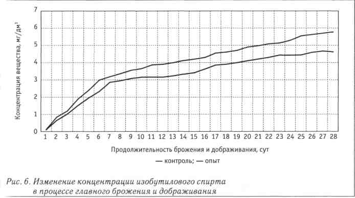 После 10-13 сут дображивания накопление высших спиртов и этилового эфира уксусной кислоты незначительно, из чего можно сделать вывод, что процесс дображивания при получении безалкогольного пива проводят не более 13 сут.
