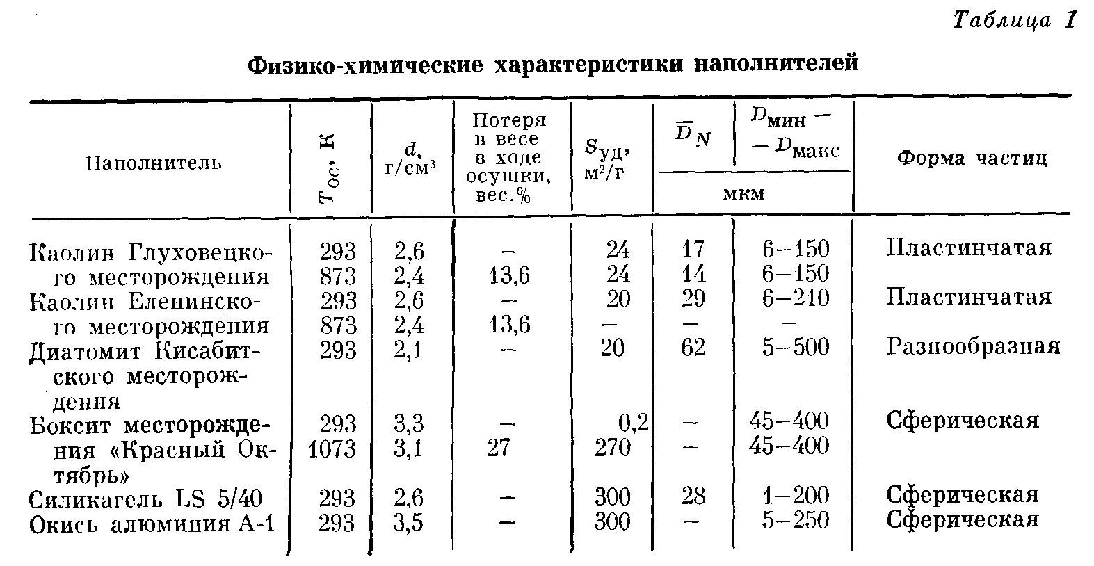 Цель настоящей работы — выяснение характера влияния степени наполнения и свойств наполнителя (природы, химического состава, распределения частиц по размерам, характеристик поверхности) на деформационно-прочностные свойства синтетических композитов.