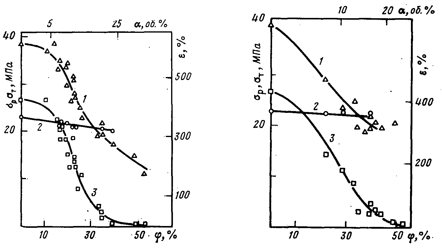 Особенности строения пористых наполнителей и свойств рассмотренных композиционных материалов хорошо моделируются системами, включающими синтетические пористые наполнители с высокоразвитой удельной поверхностью (силикагель LS 5/40, окись алюминия А-1) и СВМПЭ с ф=30 вес.%) (табл. 3). Такие композиты характеризуются относительно высокими Ор, что, видимо, обусловлено прочным адгезионным сцеплением наполнителя с ПЭ по границе раздела фаз. Для рассматриваемых синтетических композитов на основе силикагеля, окиси алюминия, как и в случае диатомита или боксита, резкое уменьшение е происходит при относительно низких степенях наполнения.