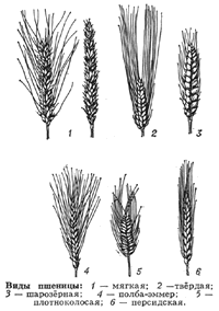 -гордеиформе Каждая разновидность включает ряд сортов, различающихся между собой (не всегда) по морфологическим признакам, но главным образом по биологическим и производственным особенностям. В пределах одной и той же разновидности могут быть сорта озимые и яровые, скороспелые и позднеспелые; они могут отличаться друг от друга по зимостойкости, засухоустойчивости, осыпаемости, устойчивости к болезням и вредителям и т. д. Большая часть сортов мягкой пшеницы относится к разновидностям эритроспермум, ферругинеум, лютесценс, мильтурум, а сортов твердой пшеницы — к гордеиформе и мелянопус. |