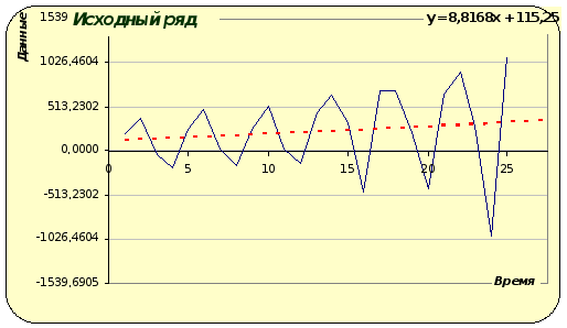 Например, после сглаживания ряда ряд остатков имеет критерий d = 1.912. Аналогичная статистика после сглаживания ряда - d = 1.638 - свидетельствует о некоторой автокоррелированности остатков.