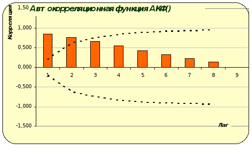 на рис. 1 представлен график АКФ, характеризующегося умеренным трендом и неясно выраженной сезонностью;