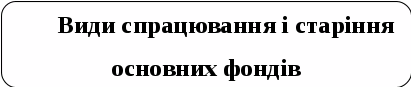 Отже, основні фонди протягом свого тривалого функціонування зазнають фізичного (матеріального) і економічного спрацювання, а також техніко -економічного старіння. Під фізичним (матеріальний) спрацьовуванням основних виробничих фондів розуміють явище поступової втрати ними своїх первісниx техніко - експлуатаційних якостей, тобто споживної вартості, що призводить до зменшення їхньої реальної вартості - економічного спрацьовування. На швидкість і розміри фізичного спрацювання основних фондів випивають їхня надійність та довговічність, спосіб використання (екстенсивне чи інтенсивне), особливості технологічних процесів, якість технічного догляду й ремонтного обслуговування, кваліфікація робітників, інші організаційно-технічні фактори.