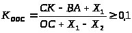 Коэффициент обеспеченности оборотных средств собственными оборотными средствами (К>оос>≥0,1)