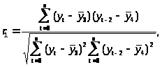 Одна из рабочих формул для расчёта коэффициента автокорреляции имеет вид: